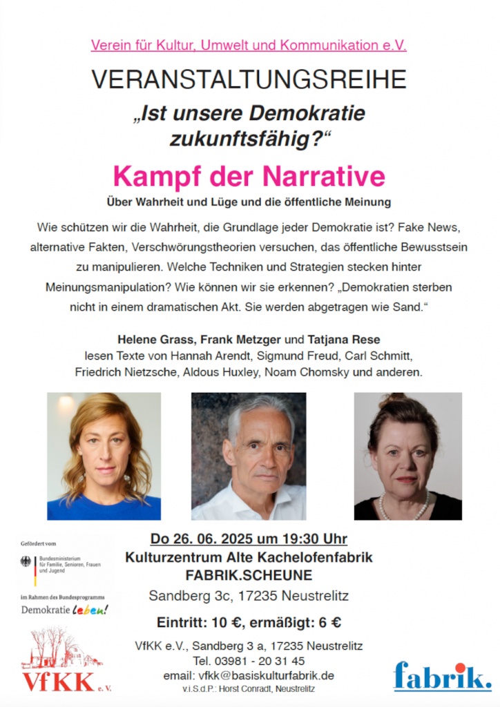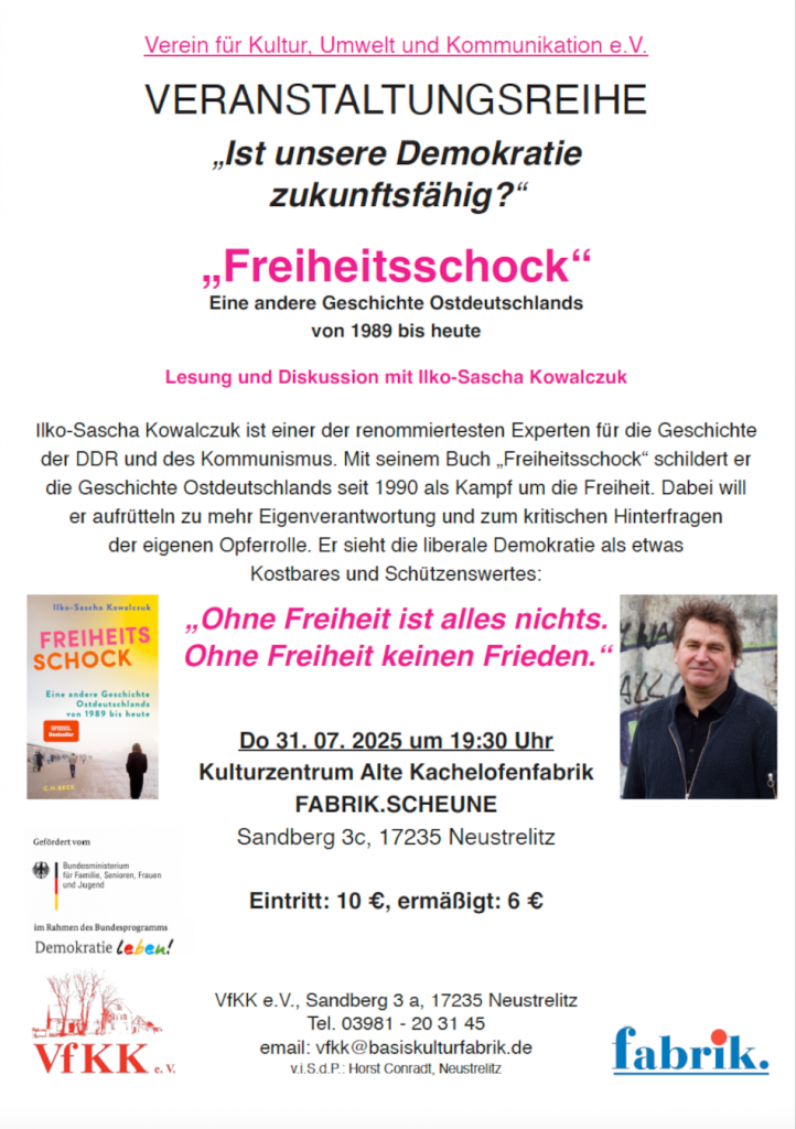 Lesung und Begegnung mit dem Frankfurter Journalisten und Schriftsteller Uwe Wittstock im Kulturquartier Neustrelitz! Die Veranstaltung wird von Kathrin Matern vom Frau Rilke Buchladen moderiert.